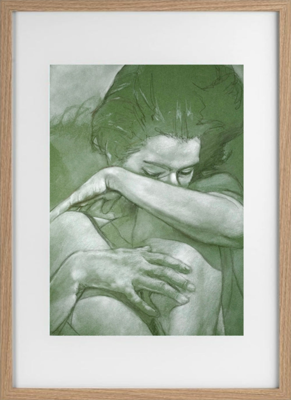 Charcoal and pastel on paper, 62x45x2 cm, framed and matted behind glass, ready to hang